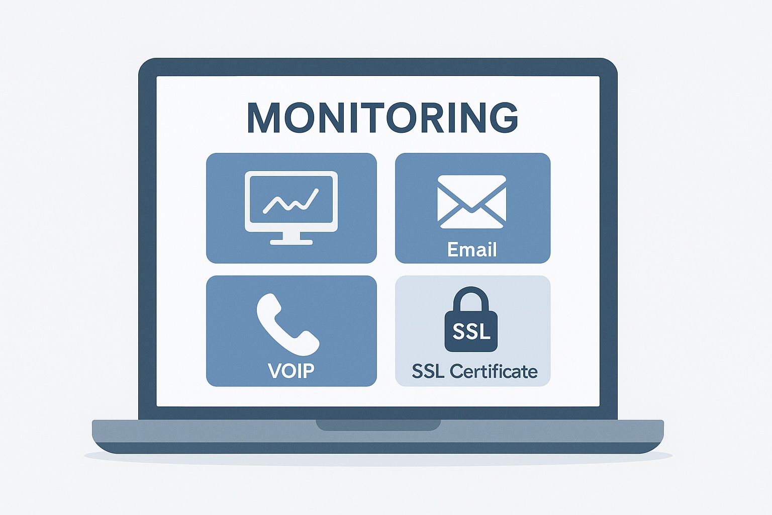 Our Website and Network Monitoring plans provide near real-time insight into the health, performance, observability and uptime of your online infrastructure. From websites and email servers to API’s, VOIP systems and SSL Certificate expiration tracking, our monitoring tools ensure that you’re always aware of the status of your essential online services.